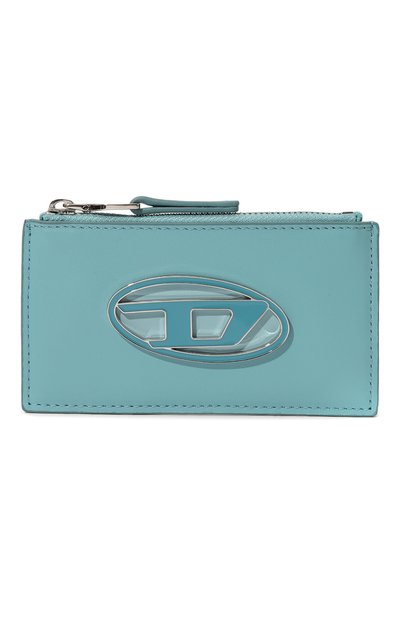 Крупная фирменная эмблема перевела этот картхолдер с молнией на центральном отсеке из просто функциональных аксессуаров в разряд акцентов. Эмаль на металлическом декоре повторяет яркий голубой оттенок гладкой кожи, с ней контрастирует серебристый логотип бренда на одном из пяти слотов для кредитных карт.