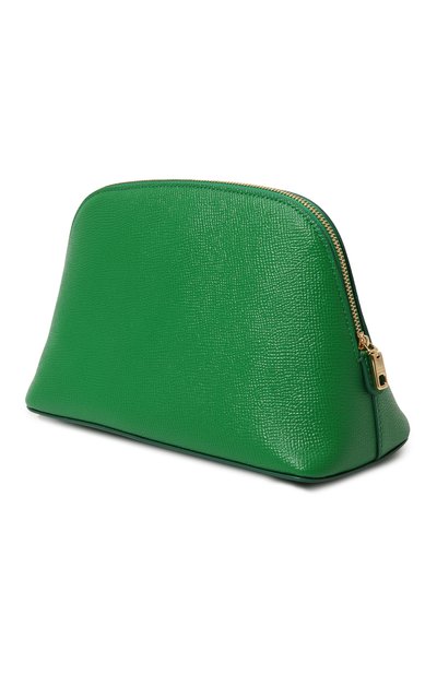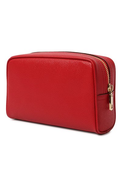 Мастера марки сшили красную косметичку из плотной кожи с фирменным тиснением Dauphine. Такая фактура выполняет не только декоративную функцию, но и делает материал более прочным. Спереди аксессуар украсили знаковой для бренда пластиной с логотипом.