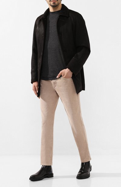 Для создания серого джемпера использовали нежную тонкую пряжу из почти невесомого kid-кашемира, произведенного из пуха козлят редкой породы Hircus. Материал с добавлением нейлона обеспечивает оптимальную для тела температуру за счет множества воздушных микрополостей, помогающих удержать тепло, и долго сохраняет безупречный внешний вид.