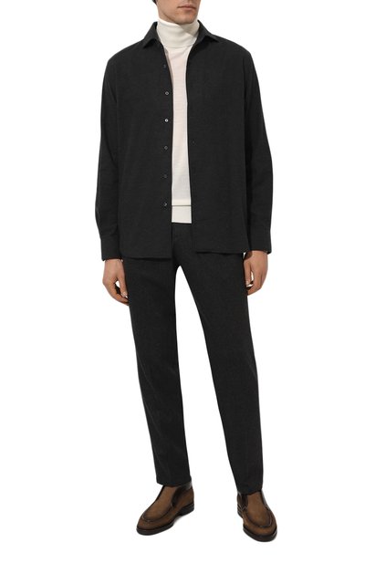 Коричневый оттенок ботинок поможет им подружиться с образом как в светлой, так и в темной цветовой гамме. Модель без шнуровки мастера марки, основанной Луиджи Коломбо, сшили из мягкой бархатистой замши, устойчивой к появлению потертостей и царапин. Скрытые под язычком эластичные вставки адаптируют обувь для стопы с любым подъемом.