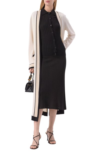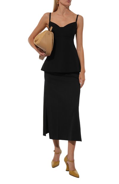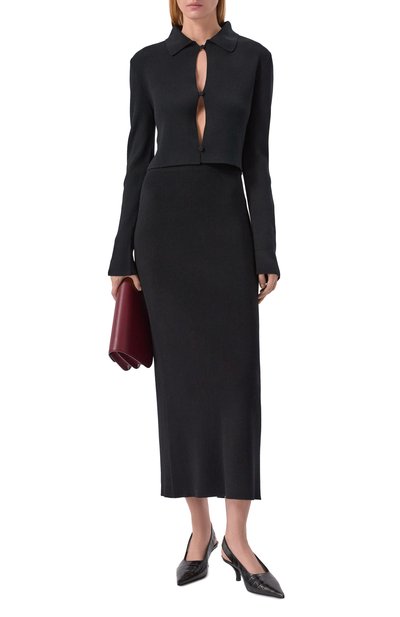 Черная миди-юбка, представленная эксклюзивно в ЦУМе, не будет противоречить офисному дресс-коду. Для изготовления модели с широким эластичным поясом, отвечающим за удобную посадку на талии, Доменико Дольче и Стефано Габбана выбрали мягкую тонкую вискозу с добавлением стрейчевых волокон. Изделие застегивается сзади потайной молние й.
