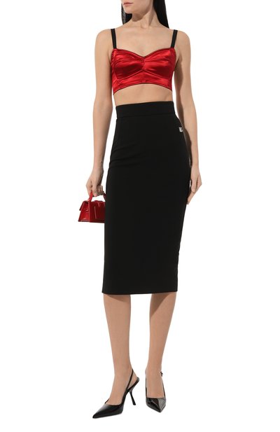 Черная миди-юбка, представленная эксклюзивно в ЦУМе, не будет противоречить офисному дресс-коду. Для изготовления модели с широким эластичным поясом, отвечающим за удобную посадку на талии, Доменико Дольче и Стефано Габбана выбрали мягкую тонкую вискозу с добавлением стрейчевых волокон. Изделие застегивается сзади потайной молнией.
