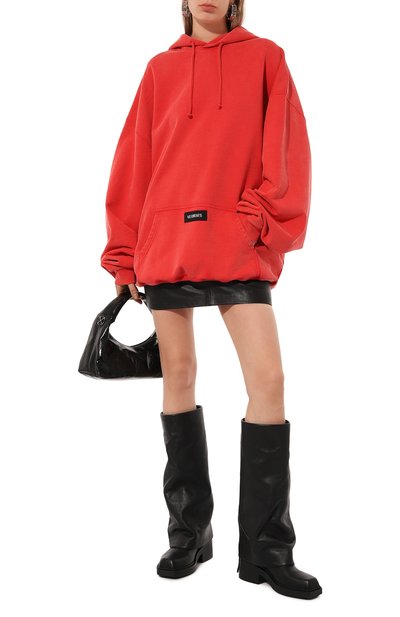 Красное худи, представленное эксклюзивно в ЦУМе, делает женственнее укороченная длина, подчеркивающая талию. Для пошива модели использовали мягкий хлопковый футер, который пропускает воздух почти так же хорошо, как джерси, но лучше удерживает тепло тела. Доменико Дольче и Стефано Габбана украсили изделие многослойным брендированным патчем спереди.