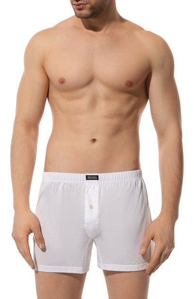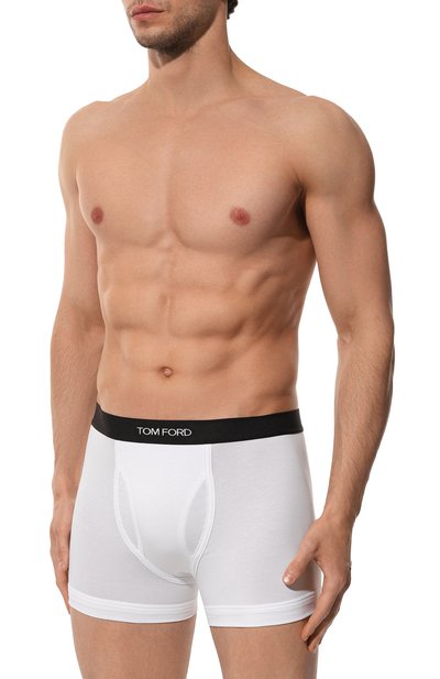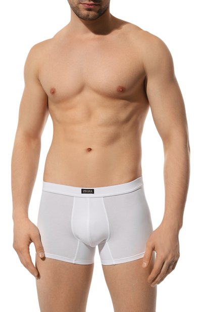 Для пошива белых боксеров с анатомическим кроем использовали мягкий эластичный трикотаж на основе отборного хлопка с длинными шелковистыми волокнами. Трусы из такого материала хорошо пропускают воздух, быстро отводят влагу и комфортно облегают тело, не ограничивая свободу движений. Широкий контрастный пояс-резинку украсили жаккардовым логотипом.