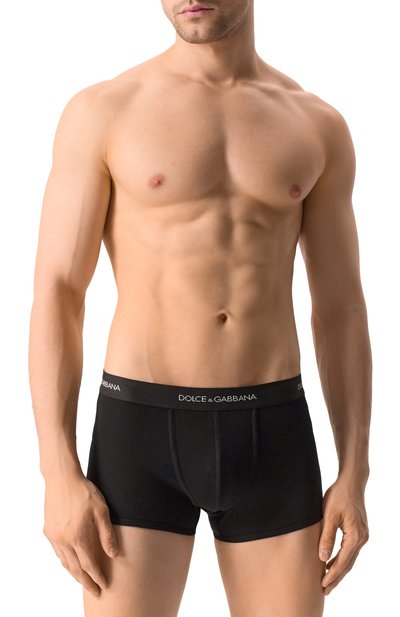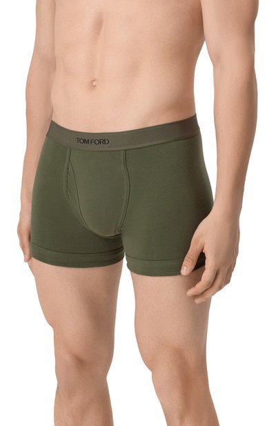 Облегающие боксеры выполнили из тонкого хлопкового трикотажа. Модель с плоскими швами дополнили широким жаккардовым поясом с логотипом.