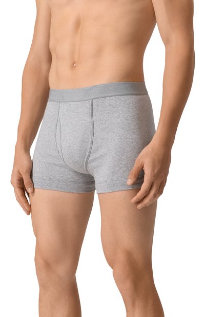 Для пошива меланжевых боксеров использовали мягкий эластичный трикотаж из отборного хлопка. Широкий пояс-резинку украсили спереди контрастным жаккардовым логотипом.