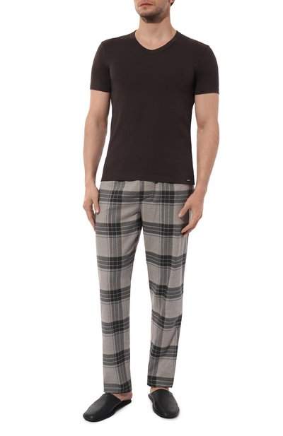 Коричневая футболка пополнит гардероб комфортной одежды для дома и отдыха. Приталенную модель с круглым вырезом сшили из тонкого хлопкового джерси, которое немного тянется и дает воздуху циркулировать, а на ощупь — максимально приятное. Принадлежность марке обозначили миниатюрным брендированным патчем снизу.