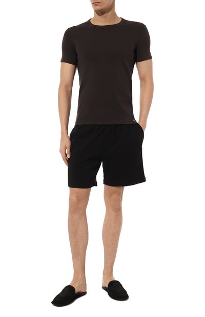 Футболка кроя Regular fit подойдет для комфортного домашнего отдыха. Для пошива модели с небольшой брендированной пластиной внизу использовали джерси из хлопка с добавлением эластана.