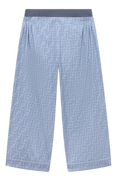 Свободные голубые брюки с мелкими защипами вдоль широкого серого пояса сшили из тонкого хлопкового твила с фирменным крупным паттерном Zucca. Приятная на ощупь ткань с плотным диагональным переплетением нитей хорошо пропускает воздух и почти не мнется, поэтому изделие будет выглядеть свежим весь день.