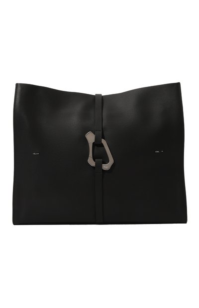 Для создания прямоугольной черной сумки использовали гладкую матовую кожу. На фоне этого мягкого материала особенно выразительно смотрится серебристая фурнитура в виде фигурных карабинов, которыми дополнили узкий ремешок на передней панели и регулируемый плечевой ремень. Внутрь поместятся бумаги формата А4, кошелек, бутылка воды, смартфон.