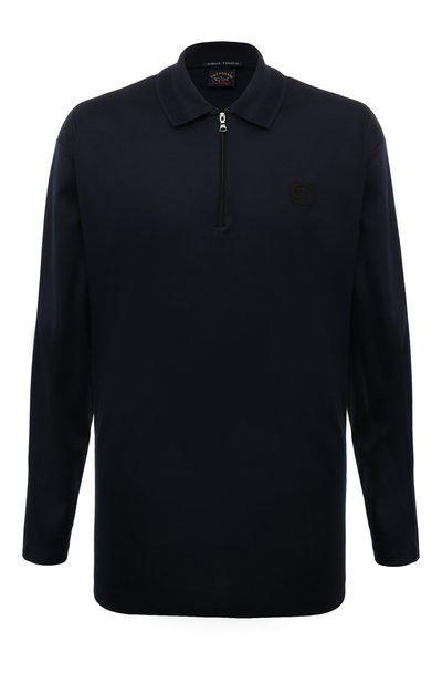 Для пошива темно-синего поло с длинными рукавами мастера марки использовали тонкий дышащий трикотаж из отборного хлопка. Нити обработали для шелковистой гладкости и плотно переплели между собой, поэтому материал получился особенно приятным на ощупь и приобрел деликатный блеск. Спереди модель украсили миниатюрным гибким патчем с эмблемой.
