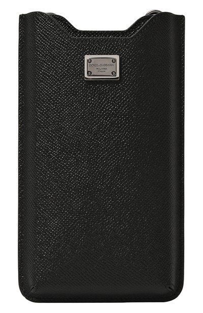Для изготовления черного плоского футляра для iPhone использовали прочную кожу с фирменным тиснением Dauphine. Глянцевый блеск материала поддержали сиянием серебристой двухслойной накладки с выгравированным логотипом бренда на передней панели. Аксессуар дополнили узким плечевым ремнем, регулируемым по длине.