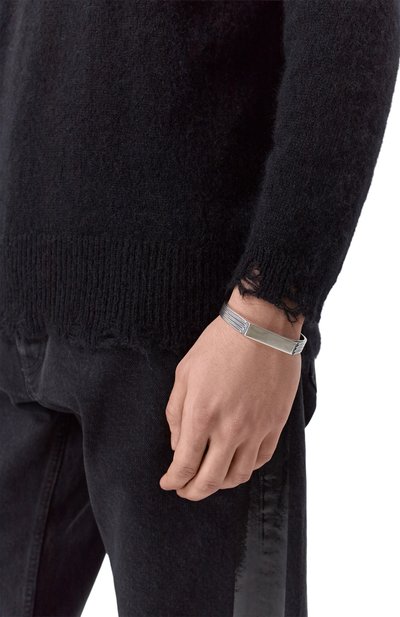 Узкий незамкнутый браслет сделали предельно лаконичным: из декора лишь выгравированный логотип на плоской шинке. Для изготовления аксессуара использовали серебро 925-й пробы с гальваническим покрытием, которое не потемнеет со временем. Такое украшение будет одинаково уместно как в повседневном, так и нарядном комплекте.