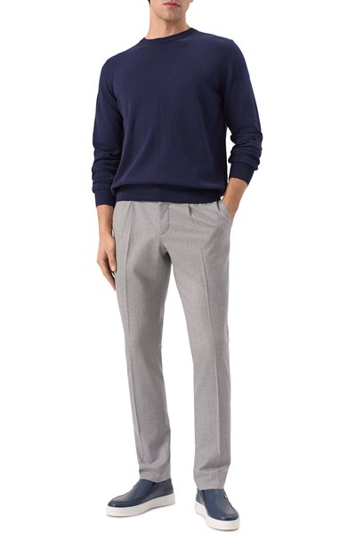 Темно-синий пуловер пропишется в офисе, но наши стилисты предлагают сочетать его с джинсами и оксфордами. Лаконичную модель с V-образным вырезом изготовили из тонкого шерстяного трикотажа, который совмещает в себе легкость и способность поддерживать комфортный микроклимат.