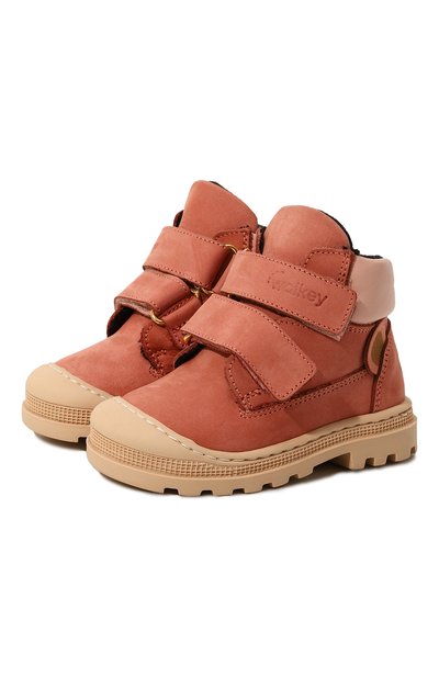 Розовые ботинки, украшенные аппликацией в виде мордочки медведя, идеально адаптированы для холодной погоды. Верх из плотного нубука и мягкая подкладка из шерсти и нежного кашемира надежно удерживают тепло. Контрастные панели по нижнему краю защищают от попадания влаги внутрь. Они словно сливаются с широкой подошвой, которая сохраняет устойчивость на скользких поверхностях.