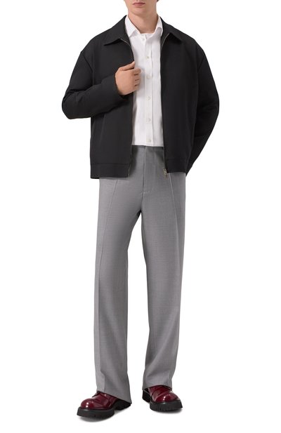 Дерби на наборном каблуке изготовили из замши. Туфли с неравномерным окрашиванием декорировали брогированным узором, а стельку — контрастным логотипом.