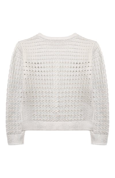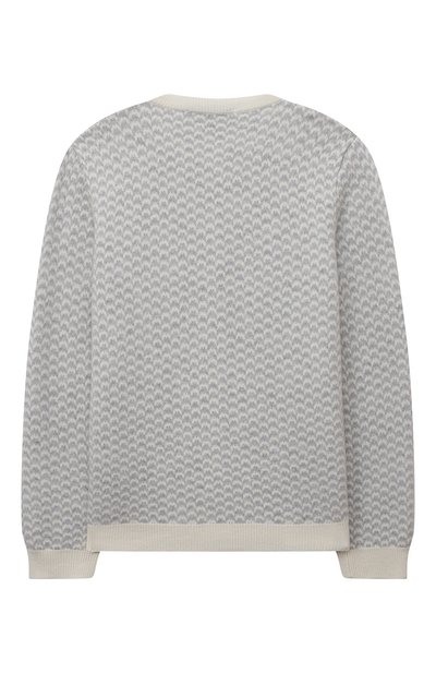 Светло-серый кардиган с графичным жаккардовым мотивом создали специально для ЦУМа. Для производства использовали тончайший кашемир из почти невесомого пуха горных коз. Животные обитают в суровых условиях, способствующих появлению у них густого подшерстка, трикотаж из которого получается особенно легким и невероятно теплым. Изделие с белым кантом застегивается небольшими пуговицами.