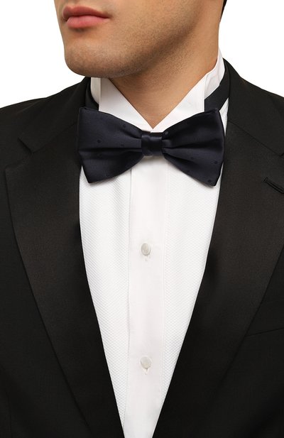 Для изготовления черного галстука-бабочки мастера бренда использовали шелковую ткань с деликатным блеском. Текстиль заложили мягкими складками, а основу продублировали еще одним слоем, чтобы традиционная форма Butterfly выглядела объемнее. Для идеальной посадки аксессуара Pre-Tied ремешок дополнили слайдером.