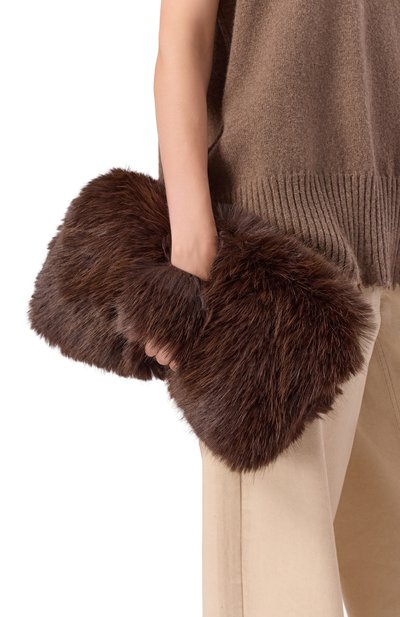 При создании зеленого клатча Массимо Джорджетти сместил фокус на материал. Для пошива модели он выбрал нежный текстиль, стилизованный под густой мех с длинным шелковистым ворсом. Фактура придает модели объем и подчеркивает ее мягкую форму. Такой аксессуар сможет сыграть главную роль в образе.