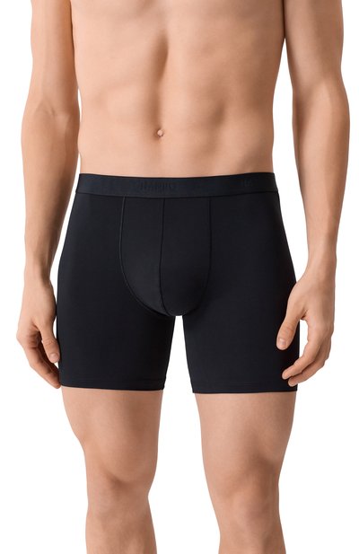Для пошива свободных боксеров использовали гладкий хлопок. Модель дополнили контрастным эластичным поясом, украшенным логотипом бренда.