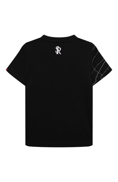 Разноцветный принт в виде брендированных стикеров делает эту синюю футболку яркой. Для пошива модели с короткими рукавами использовали мягкое джерси из отборного хлопка. Тонкий трикотаж хорошо пропускает воздух и оптимально тянется, обеспечивая комфорт в течение всего дня.
