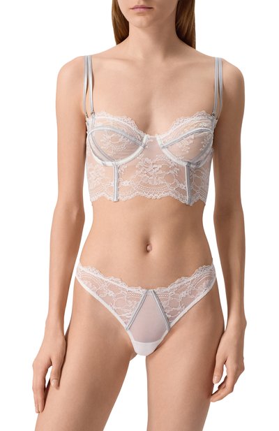 Бра-топ с узкими регулируемыми бретелями выполнили из эластичного хлопкового джерси. Широкий пояс-резинка украшен жаккардовыми логотипами марки.