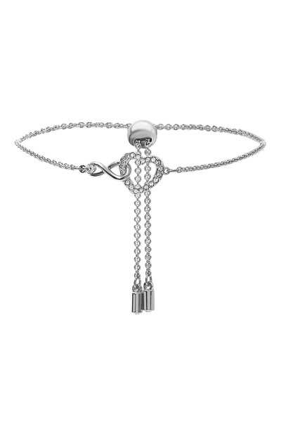 Команда бренда превратила браслет Infinity в символ вечной любви. Идею воплощают детали в форме сердца и знака бесконечности, инкрустированные прозрачными кристаллами. Аксессуар выполнили из гипоаллергенного ювелирного сплава с родиевым покрытием, которое не только защищает металл от потемнения, но и придает ему зеркальный блеск. Регулировать длину украшения позволяет слайдер-шар.