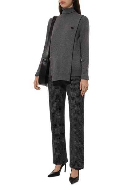 Серые меланжевые брюки в исполнении Пьетро Брунелли получились теплыми, мягкими и практичными. Нежные шерсть, кашемир и вискоза в основе пряжи гарантируют комфортный микроклимат и приятные тактильные ощущения, а нейлон отвечает за прочность. Прямая модель с широким эластичным поясом и имитацией стрелок обходится без застежек.