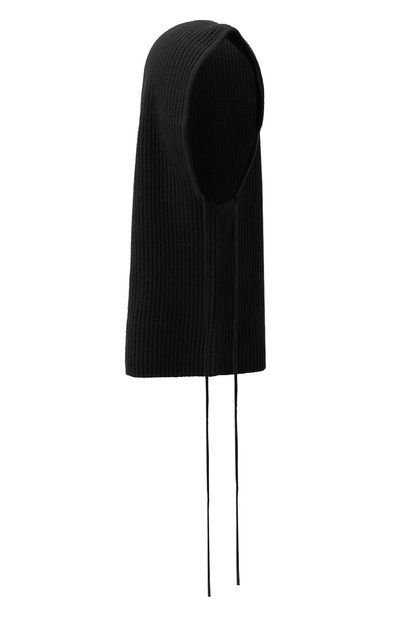 Черный капор, связанный рифленым узором, станет комфортным решением для холодного времени года. Аксессуар с узкой регулируемой кулиской на вырезе удобно сидит на голове, заменяя одновременно шапку и шарф. Нежный кашемир поддерживает оптимальный микроклимат, адаптируя модель для разной погоды.