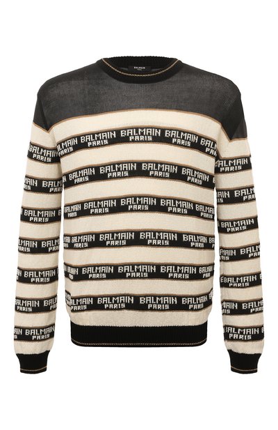 Черно-белый джемпер выводит в центр внимания графичный мотив из полос с логотипом, напоминающий бегущую строку. Для создания модели использовали мягкую хлопковую пряжу с добавлением нежной шерсти, поддерживающей оптимальный микроклимат. Чтобы предупредить пилингование и сделать изделие прочнее, материал укрепили нитями нейлона.