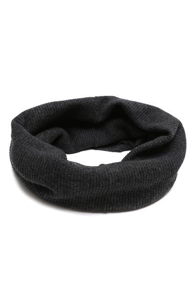 В темно-сером снуде будет особенно комфортно в холодную ветреную погоду: ширины хватит, чтобы защитить не только шею, но и голову, если накинуть его, как капюшон. Исключительно теплым и при этом легким аксессуар делает тончайший кашемир из пуха горных коз.