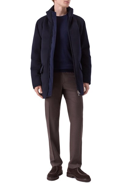 Серые дерби с миндалевидным мысом и фактурным швом на союзке сшили вручную из прочной фактурной замши. Модель окрасили в готовом виде, создав эффект патины, как у обуви с многолетней историей. Широкая протекторная подошва поможет меньше скользить на мокрой дороге.