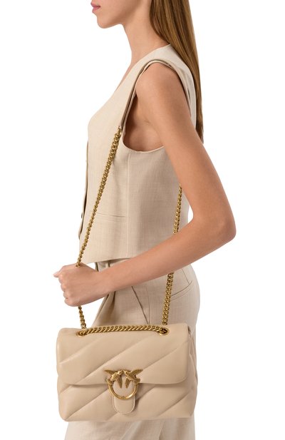 Сумка Classic Love One со скользящим плечевым ремешком-цепочкой сшита из матовой кожи. Клапан с магнитной кнопкой украшен крупной пряжкой Love Birds. Аксессуар с двумя отделениями и карманом на молнии дополнен фирменной RFID-меткой.