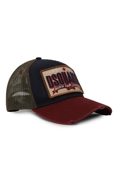 Эту бейсболку выполнили по правилам color block: изогнутый козырек с потертостями сделали бордовым, а в тулье соединили темно-синий оттенок и хаки. Игру цветов поддержали сочетанием фактур, подружив плотный габардин и мягкую сетку. Спереди аксессуар дополнили брендированным патчем.