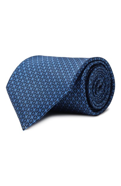 Для изготовления широкого голубого галстука с сетчатым узором, напоминающим тонкое кружево, мастера марки использовали плотный шелк с добавлением стрейчевых волокон. Аксессуар легко укладывается в сложные узлы за счет техники семи сложений, выполненной вручную. Увеличенная длина адаптирует модель для мужчин с высоким ростом.