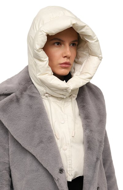 Черный капюшон с манишкой обеспечит комфорт во время прогулок. Для пошива легкой модели использовали мягкий гладкий полиэстер, защищающий от дождя, ветра и снега. Стеганые камеры аксессуара равномерно заполнили отборным утиным пухом с минимальным добавлением пера, поддерживающим оптимальный микроклимат даже в мороз.