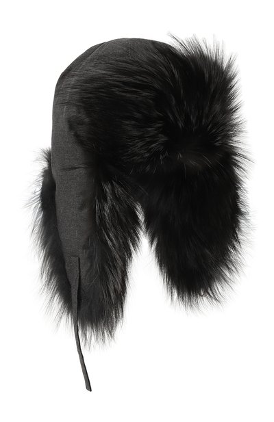 В темно-серой шапке-ушанке не будет холодно в русские морозы. Для изготовления модели использовали мягкую кашемировую фланель, которая не продувается ветром и удерживает тепло внутри. Максимальный комфорт обеспечивают легкий наполнитель из отборного пуха и отделка из пушистого густого меха полярной лисицы, не раздражающего кожу.