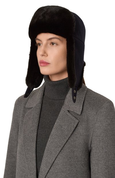 Шапку-ушанку, утепленную утиным пухом, выполнили из плотного полиэстера и стриженой овчины. Наушники аксессуара можно дополнили ремешком и D-образной пряжкой.