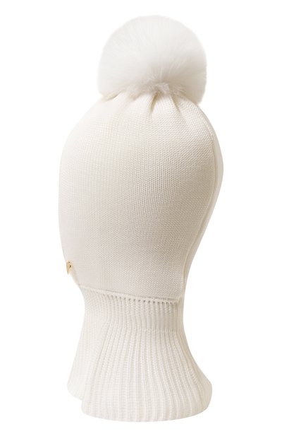Кипенно-белая балаклава — удачная альтернатива комплекту из шапки и шарфа. Модель выполнили фактурной вязкой из нежного кашемира, который согревает в несколько раз лучше, чем обычная шерсть. Еще одно преимущество такого материала — его особенная мягкость, поэтому изделие приятно ощущается на коже.