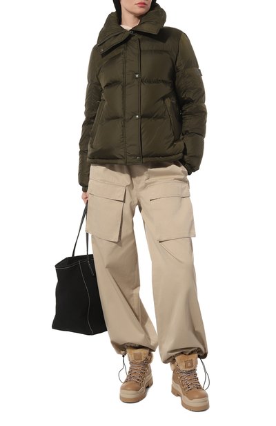Куртку Appleton из нейлона стрейч утеплили утиным пухом и пером. На талии предусмотрели кулиску, а по бокам – накладные карманы. Левый рукав декорировали фактурным брендированным патчем, которому вторят фирменные алая полоса на спинке и брелок-петля. Пуховик с капюшоном и съемными внутренними лямками застегивается встречной молнией.