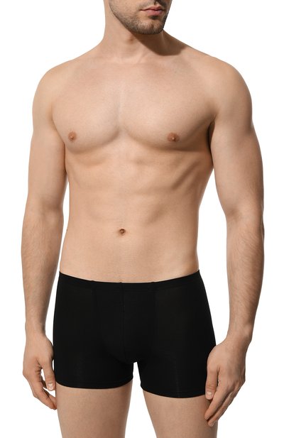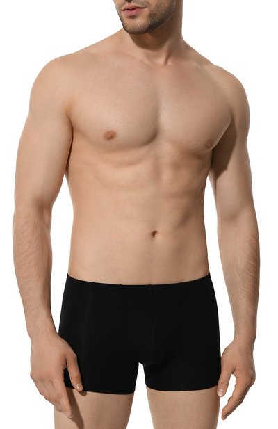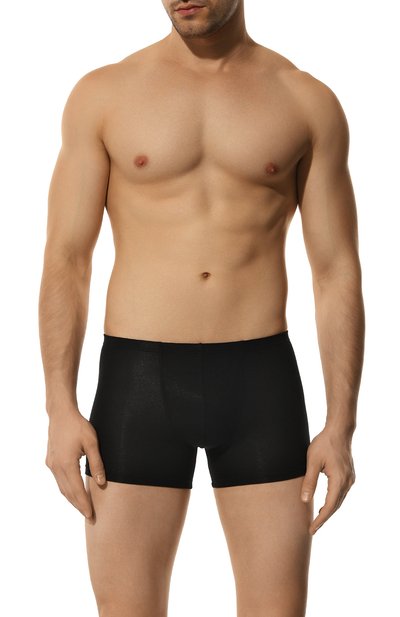 Черные боксеры комфортно облегают тело и не сковывают движения. Для изготовления модели выбрали слегка эластичный трикотаж с гладкой фактурой. Трусы дополнили широким плоским поясом, на котором только объемом выделяется паттерн, составленный из логотипа марки.