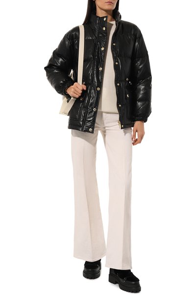 Черные лаконичные ботинки с фактурным швом вдоль мыса и союзки мастера марки, основанной супругами Сантони, выполнили из мягкой бархатистой замши. Она быстро подстраивается под индивидуальные линии стопы, обеспечивая комфортную посадку по ноге. Пару утеплили внутренней отделкой из нежной овчины.