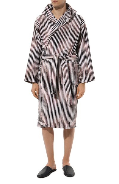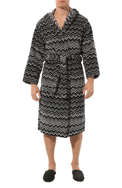 Этот халат с капюшоном и поясом-лентой идеально подойдет для комфортного домашнего отдыха. Для пошива модели использовали текстиль из отборного длинноволокнистого хлопка.