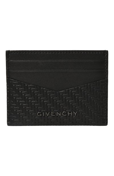 Лаконичный черный картхолдер выполнен из комбинации прочной матовой кожи двух фактур: гладкой и с имитацией плетения. В аксессуаре предусмотрели шесть слотов для пластиковых карт и отделение дл я чеков. Принадлежность бренду обозначили металлическим логотипом в тон.