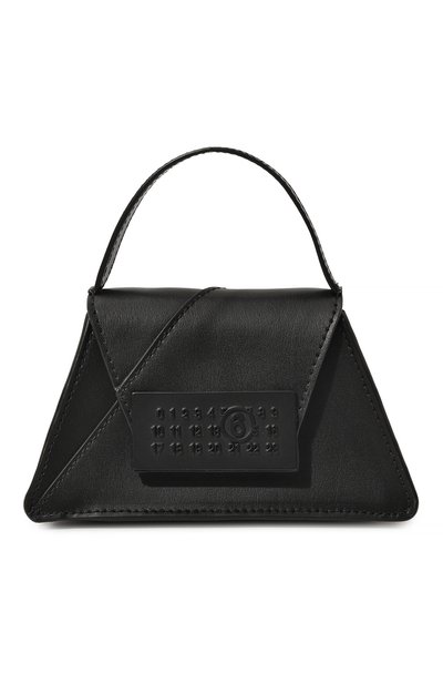 Черную миниатюрную сумку Numbers украсили пряжкой с фактурным тиснением в виде числового кода, который заменяет бренду логотип. Еще один знаковый акцент в виде белой строчки разместили на задней панели. Для пошива аксессуара, словно выполненного в технике оригами, мастера марки использовали плотную кожу. Модель с короткой ручкой дополнили съемным плечевым ремнем.