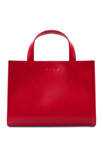 При создании небольшой сумки с короткими ручками Массимо Джорджетти отказался от яркого декора, чтобы привлечь внимание к насыщенному красному цвету. Эффект усиливает материал. Для изготовления аксессуара использовали глянцевый полиуретан, хорошо держащий форму. Переднюю панель дополнили едва заметным тисненым логотипом бренда.