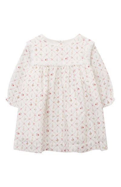 Кремовое платье с объемными рукавами и круглым вырезом сшили из нежной шелковистой вискозы. Легкий нежный материал хорошо пропускает воздух и приятно ощущается на коже. Романтичность, заданную цветочным мотивом Fleuri, поддержали узкой кружевной оборкой, подчеркивающей края квадратной кокетки. Модель застегивается пуговицами по всей длине сзади.