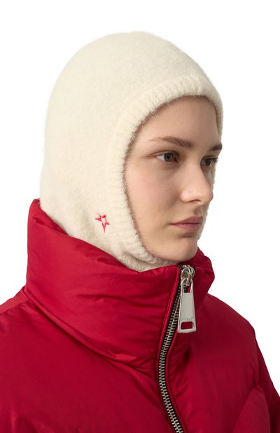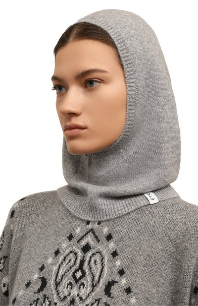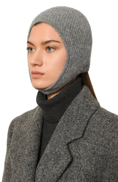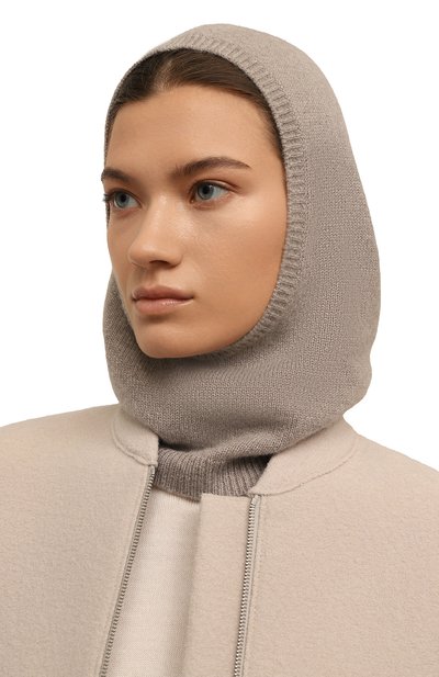 Для изготовления лаконичного капора с широкой манжетой и узким кантом в рубчик использовали чистый кашемир. Сочетание в составе пряжи неокрашенных нитей разных оттенков придало аксессуару меланжевый эффект.