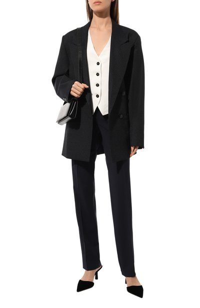 Немного укороченные зауженные брюки Tariyanah со складками спереди и стрелками выполнили из японского крепа на основе целлюлозы из древесины, заготовленной в управляемых лесах. Модель с поясом-кулиской дополнили боковыми карманами и прорезным задним.