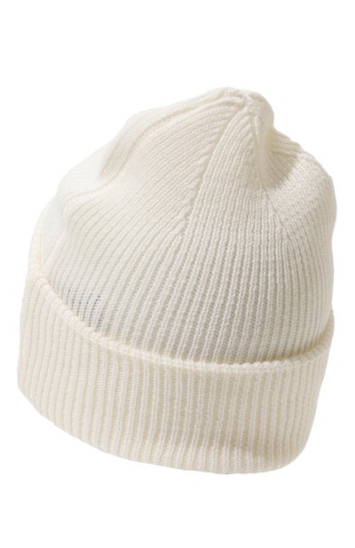 Шапку бини выполнили в технике резинки из переработанной шерсти, укрепленной полиамидом. Широкий отворот украсили брендированным патчем фирменного алого оттенка.